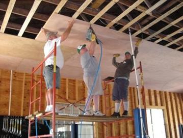 At left are Gary Chuck & Bill nailing 40 sheets of